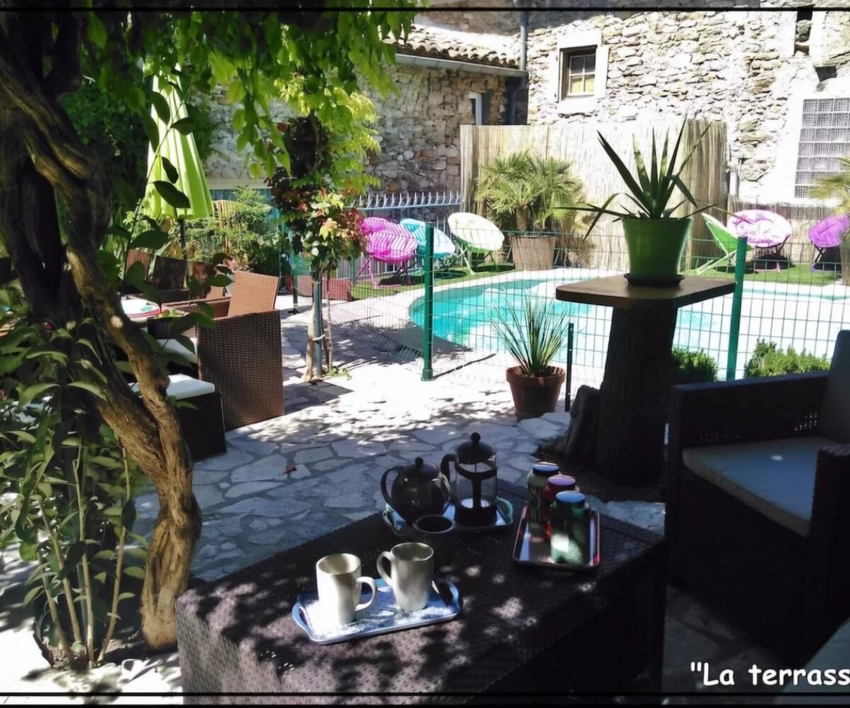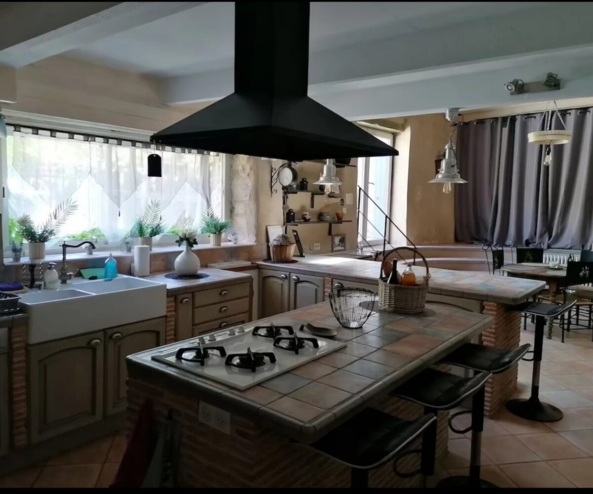 * d’un Gîte de 150m² env. recevant 13 personnes avec 4 chambres, belle pièce de vie « du charme » donnant sur une cour intérieur avec sa piscine sans vis à vis.