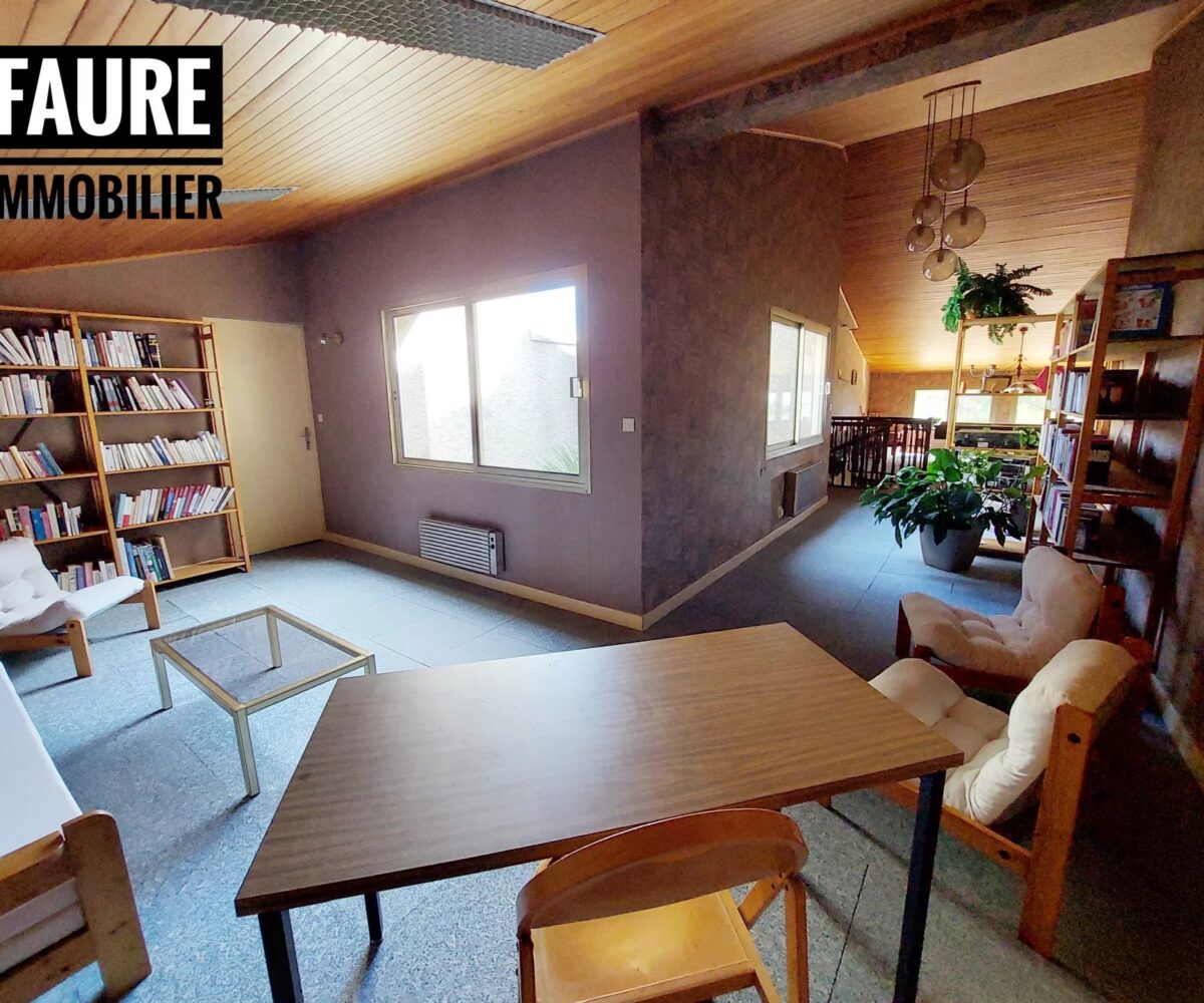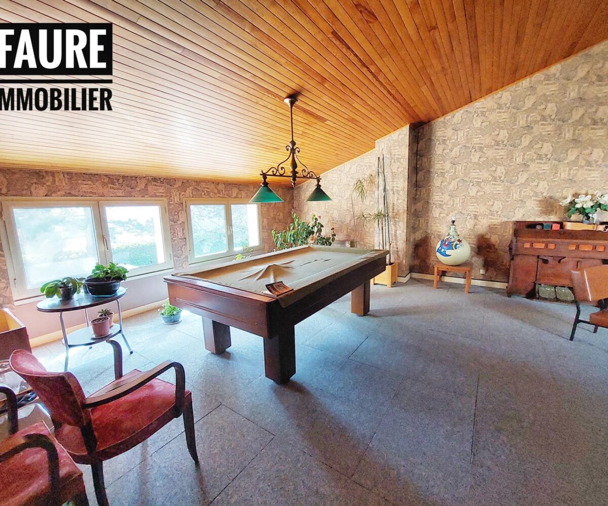 Au 1er étage, Très grand espace détente (jeux, bibliothèque…), une 3eme suite parentale avec salle de bain, et un espace comble aménagé idéal pour salle de cinéma
