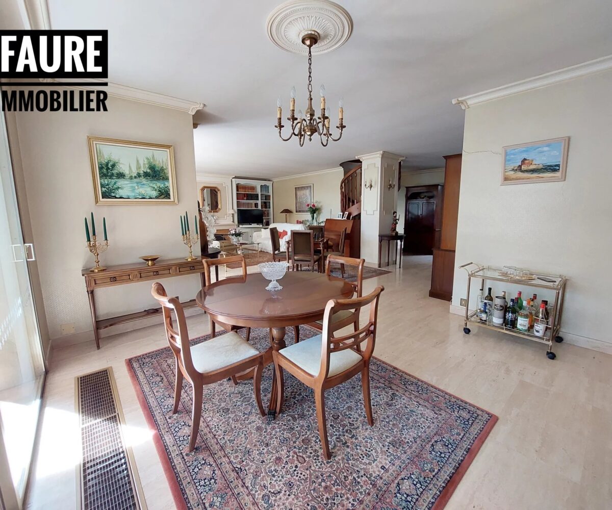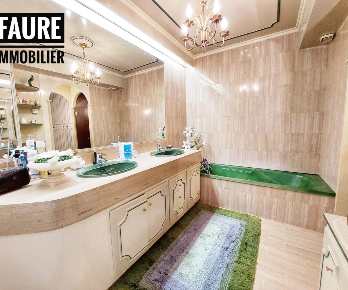 Villa d’environ 250m² habitable composée au RDC d’une grande pièce à vivre très lumineuse d’environ 50m² équipée d’une cheminée, d’une cuisine (avec cellier) donnant sur une terrasse et le jardin ainsi que 2 suites parentales avec salle de bain et d’une buanderie/dressing.